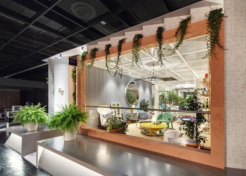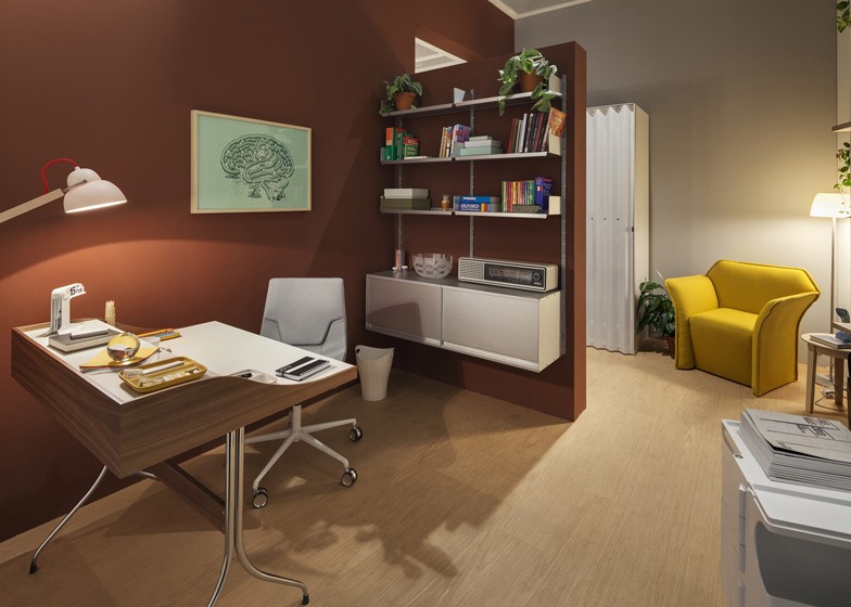 ชั้นวางของ ขนาดใหญ่แยกเป็นบล็อกตารางสวยงาม จัดวางได้ทั้งหนังสือแจกันหรือเครื่องประดับตกแต่งสวยงามอื่นๆ แต่งเติมด้วยแจกันต้นไม้ขนาดเล็ก เพิ่มบรรยากาศสีเขียวให้กับห้องนั่งเล่นส่วนนี้ดูสวยงาม โดดเด่น