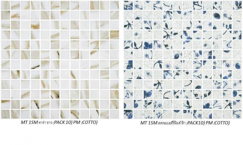 กระเบื้องโมเสก มีหลายวัสดุ เช่น แก้ว หิน เรซิน ฯลฯ เป็นกระเบื้องขนาด 2.5 × 2.5 เซนติเมตร นํามาเรียงกันบนตาข่ายเป็นผืนขนาด 30 × 30 เซนติเมตร นิยมนํามาตกแต่งผนัง เป็นส่วนใหญ่