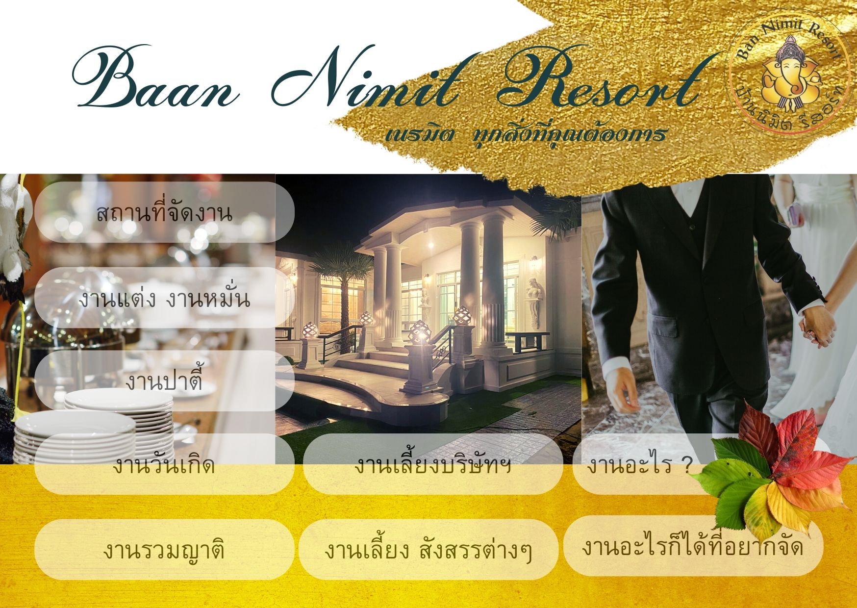 จัดงานเลี้ยง งานแต่ง งานสังสรรค์ต่างๆ ครบวงจร ณ บ้านนิมิต รีสอร์ท