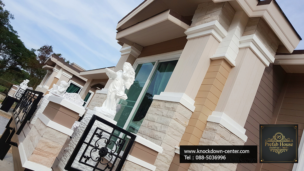 หากมองผิวเผินคงจะดูไม่ออกกันเลยทีเดียวค่ะว่าบ้านหลังนี้เป็น บ้านสำเร็จรูป บ้านน็อคดาวน์ แต่ไม่ใช่แค่ความสวยอย่างเดียวนะคะ ผู้ผลิตยังเน้นในเรื่องของคุณภาพสินค้าที่ต้องมีความแข็งแรงทนทานเป็นหลัก เพื่อให้คุณลูกค้า และ ครอบครัวอยู่อาศัยได้อย่างถาวรเลยค่ะ ว่าแล้วแอดมินก็จะพาชมหลังนี้กันเลยดีกว่า รับรองว่าต้อง